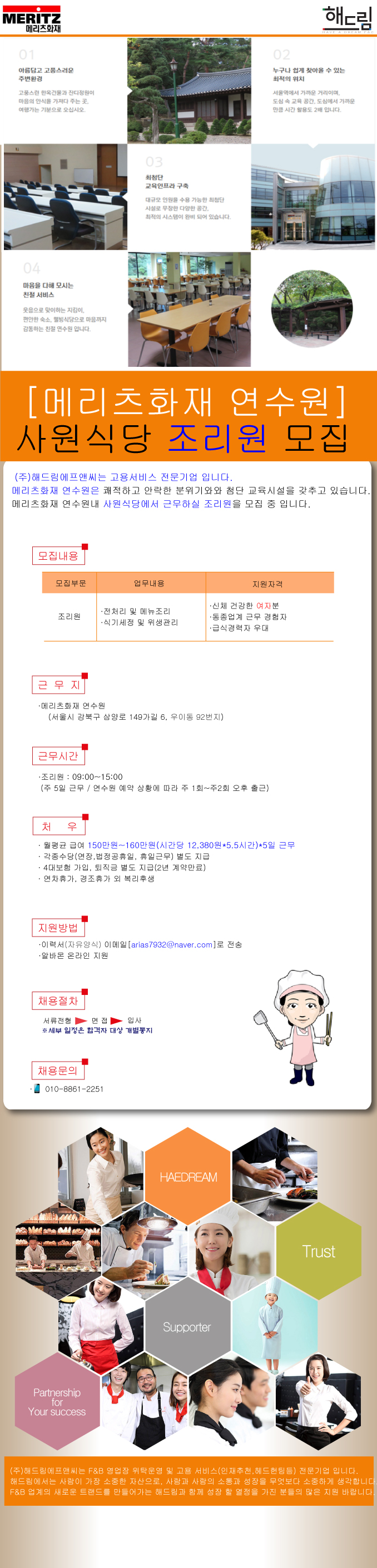 ㈜해드림에프앤씨는 사람을 가장 소중한 자산으로 여기며,